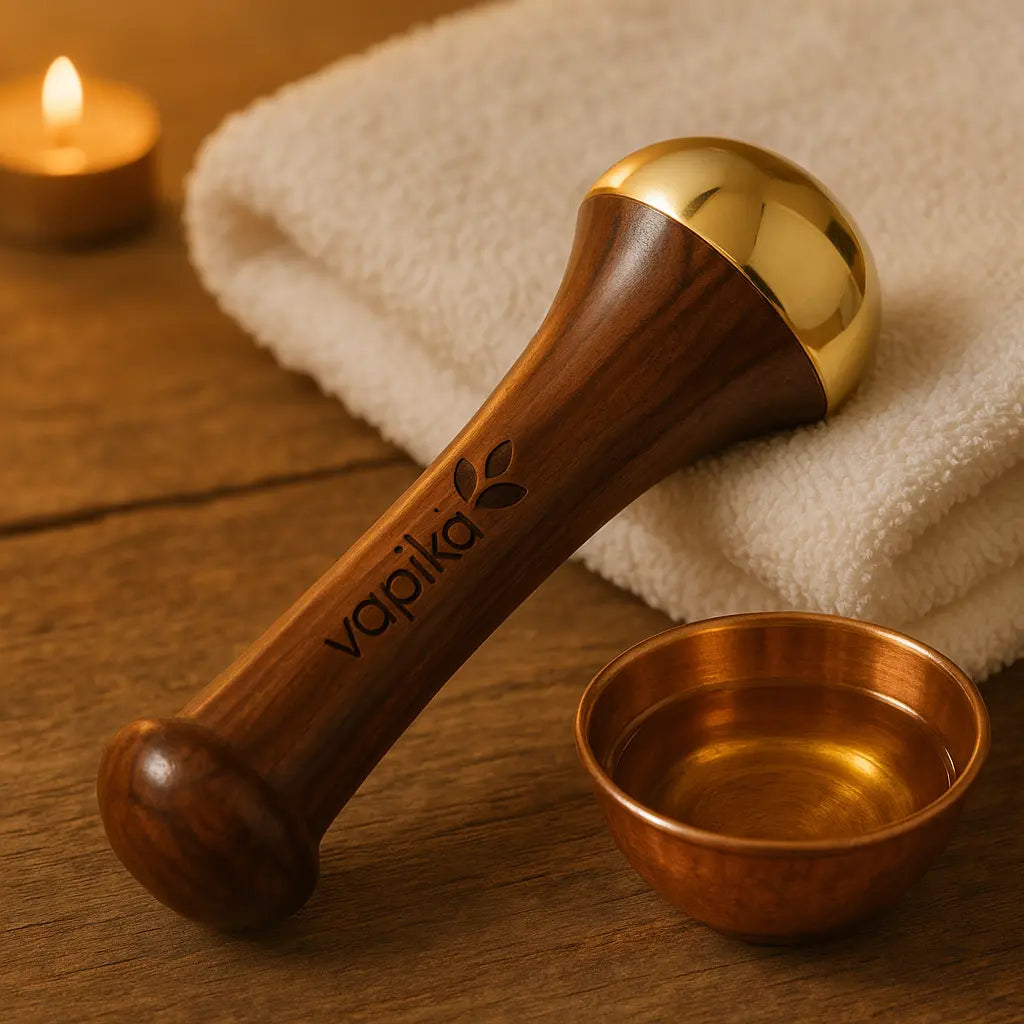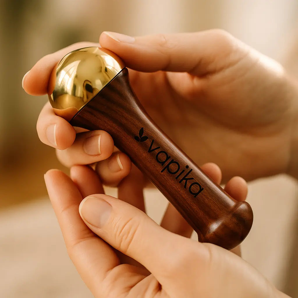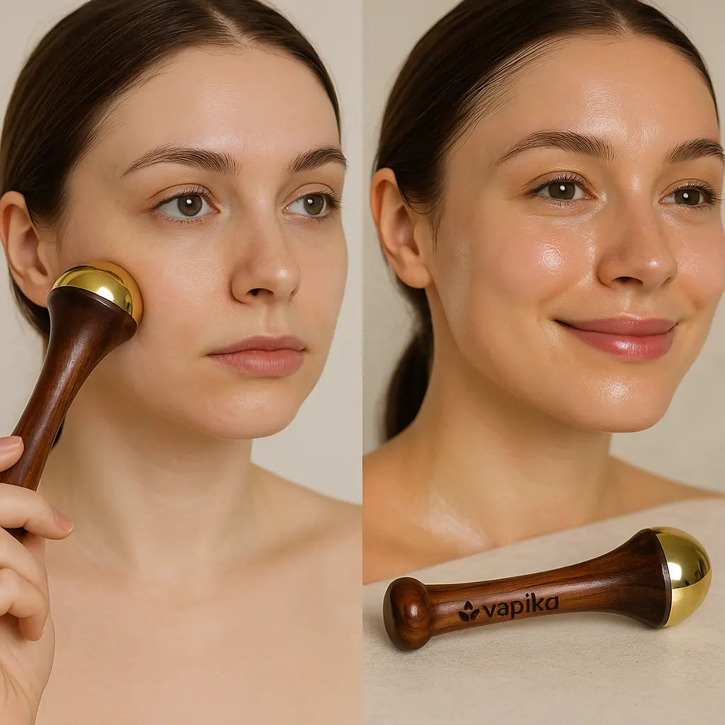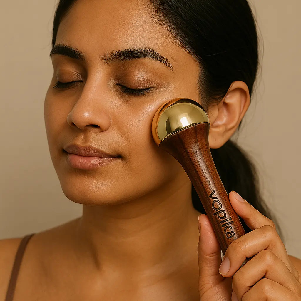 Handcrafted Ayurvedic Kansa wand with a sleek modern finish, perfect for daily facial glow, de-puffing, and lymphatic massage.